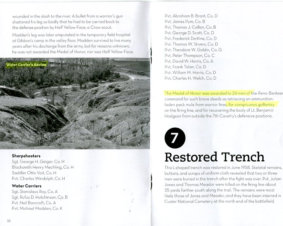 After learning I had an ancestor who'd fought at the Little Big Horn as a soldier in the 7th Cavalry under Custer, I dug out and paid more attention to the brochure I'd picked up in the museum at the battlefield. It listed his name and how, as a water carrier, he won the Medal of Honor.