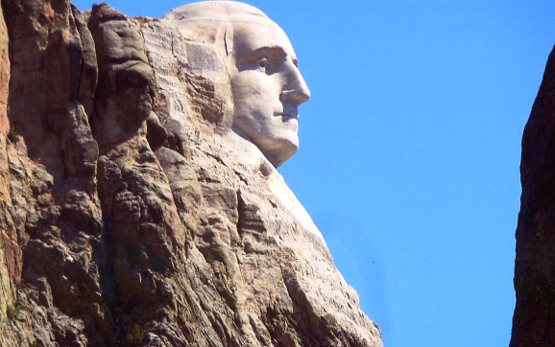 "...High on a pine-clad mountain in South Dakota's Black Hills are carved the faces of four presidents of the United States -- George Washington, Thomas Jefferson, Abraham Lincoln, and Theodore Roosevelt -- each chosen for such commemoration because of his unique contribution to and the building and shaping of his country. Created as a monument not only to those men but also to the aspirations and ideals of the nation they did so much to mold, the four faces together constitute the world's most gigantic piece of sculpture. Eight hundred million (800,000,000) pounds of stone were removed in its carving, and so huge are the faces that from brow to chin each is as tall as the entire Great Sphinx of Egypt. Ordinary men of the same proportions would stand shoulder-even with a 40-story building and could wade the Mississippi River without dampening their knees. Yet, so skillfully are the faces carved that to an observer viewing them from across the canyon they do not appear massive or course or even heavy. On the contrary, they look as graceful and lifelike as the finest busts sculpted in a studio. Carved upon a cliff that has changed but little since mankind first appeared on earth...the faces will still be there, looking much as they do now, long after man has gone. All things considered, Mount Rushmore National Memorial is not only America's greatest and most enduring monument, it is all of mankind's as well..."