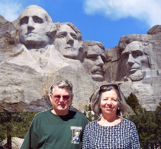 Above, in the cut-and-paste pic of us in front of the best photo we took of the faces on Mount Rushmore, I am not, by any stretch of the imagination, trying to fill the gap left by Borglum on the mountain. It just looks that way.