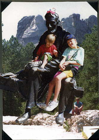 By the time Gutzon Borglum, born 1867, died 1941, came to carve Mount Rushmore in 1927 he considered himself one of the best sculptors in the world and was always self-promoting so as not to suffer the fate of many artists who toil away in obscurity and poverty. In his thirties, after studying in Europe, Borglum opened his own studio in New York City and competed for commissions. In 1908 Borglum carved a bust of Lincoln directly from a block of marble without a clay model to copy from. Borglum read everything he could about Lincoln and studied photos to get a sense of his character so as to capture him in stone. In 1911 Borglum carved a bronze statue of Lincoln sitting on a bench contemplating, as was his habit to do in the White House garden after bad and sad news from the war. During a visit to Mount Rushmore in late 80s I snapped a photo of my sons sitting on Lincoln's lap on that statue.