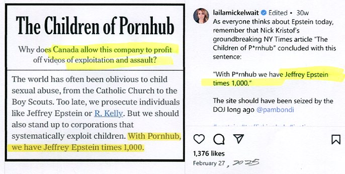 Victims of the 'Zuckerberg of Porn' - The Children of Pornhub: Why does Canada allow this company to profit off videos of exploitation and assault?... Too late, we prosecute individuals like Jeffrey Epstein or R.Kelly. But we should also stand up to corporations that systematically exploit children. With Pornhub, we have Jeffrey Epstein times 1,000. See 25.Prolefeed & 30.Love Instinct & Family & 35.Big Brother's Brotherhood