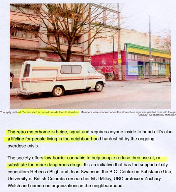 Vancouver Cannabis Substitution Project assumes 'Doobie Van' operations (Founder Neil Magnuson says his harm-reduction society won't give up -- even after being raided and evicted from its storefront), Mugglehead, November 21, 2020