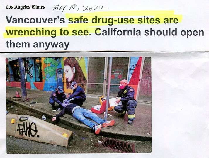 Vancouver safe drug sites wrenching to see, Los Angeles Times, May 18, 2022