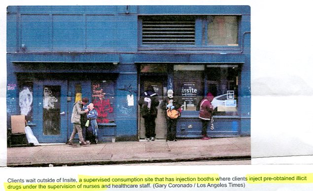 ...Imagine drug addicts clustered together on the sidewalk under make-shift lean-tos of tarps and rope surrounded by filth, empty food containers, clothes, shoes, garbage bags and bottles. Cast your mind's eye to rail-thin emaciated female drug addicts shuffling along with nowhere really to go, an elderly Asian man dumpster diving and dozens of drugged out people sitting on the sidewalk or cartons staring into space... This is proof of the harm of safe injection sites, a permissive out-of-control drug culture, politicians who have let the problem escalate and social justice do-gooders who are doing more harm than good. The few Vancouverites who dared to speak up were loudly attacked by the harm reduction activists. Go to HARD-DRUG HARM-SITES DANTE INFERNO