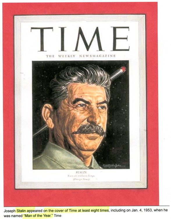 Joseph Stalin appeared on the cover of Time at least 8 times including on January 4th 1953 when he was named Man of the Year by Time