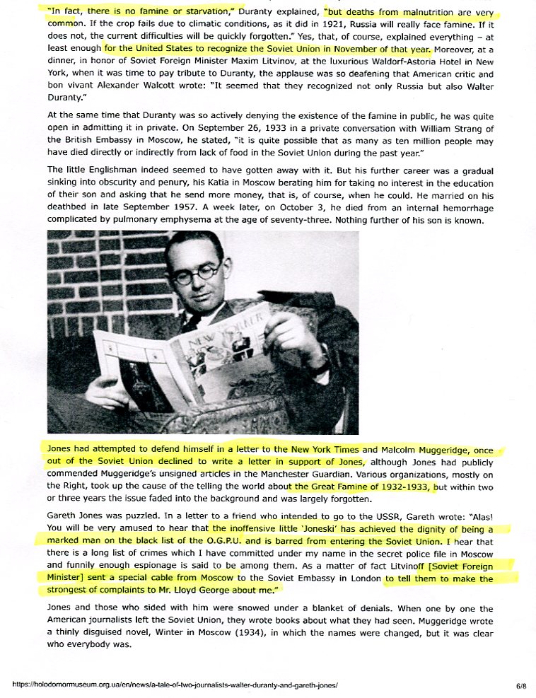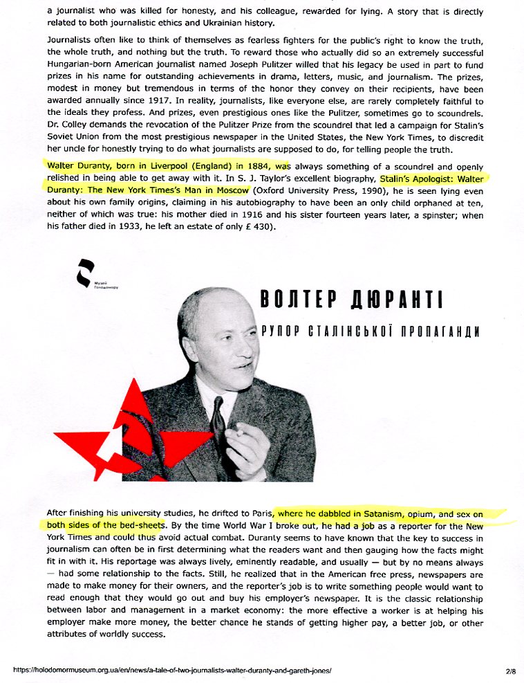 Here's a recent article from the Holodomor Museum website about Walter Duranty and Gareth Jones: