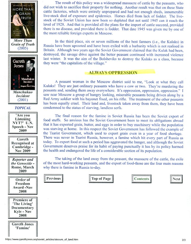 SEIZURE OF LAND AND SLAUGHTER OF STOCK IN USSR, by Gareth Jones, Western Mail, 1933