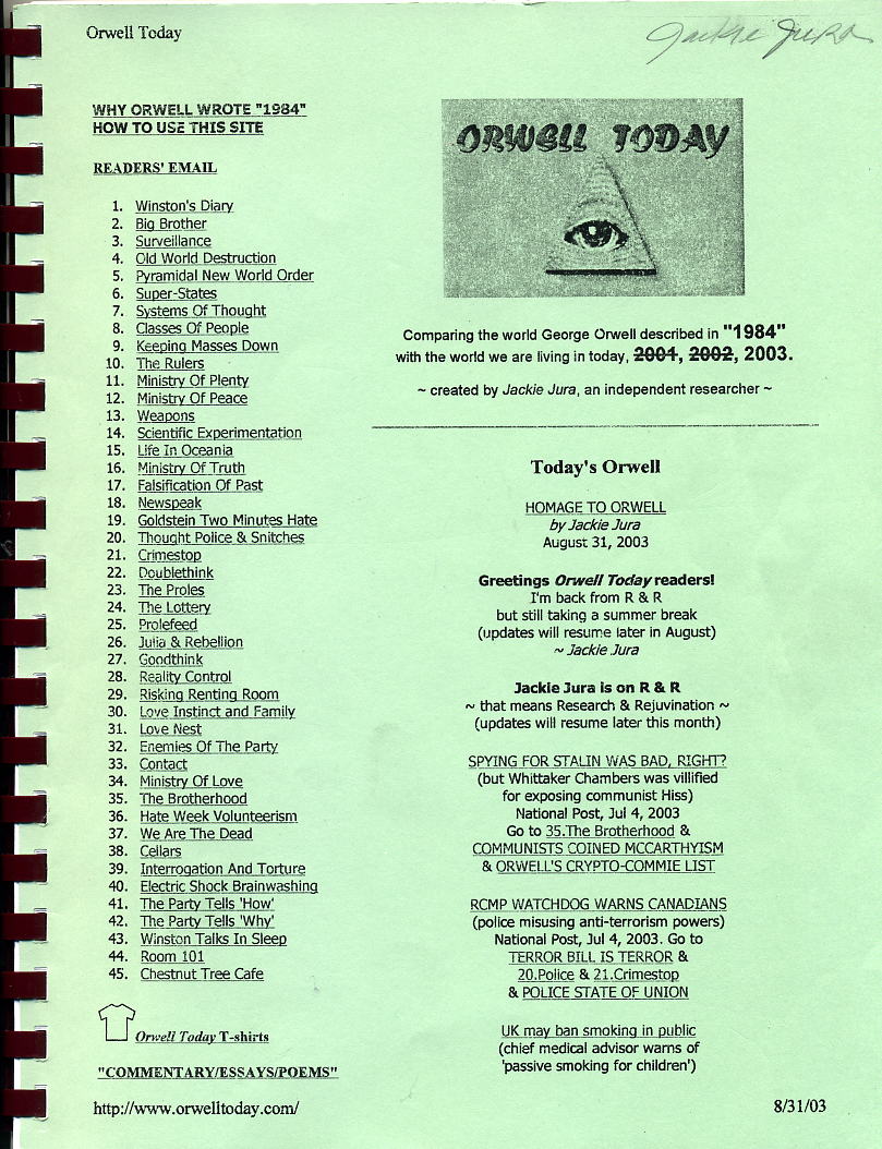 My Homage to Orwell is presented in the order in which it was conducted, not in chronological order of his life.