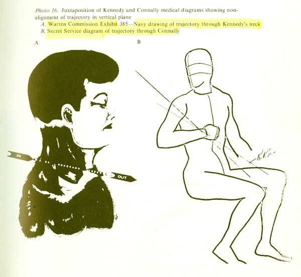 At tne news conference, Dr Perry answered a series of hypothetical quesitons and stated to the press that a variety of possiblities could account for the President's wounds. He stated that a single bullet could have caused the President's wounds, by entering through the throat, striking the spine, and being deflected upward with the point of exit being through the head. This would have accounted for the two wounds he observed, the hole in the front of the neck and the large opening in the skull....