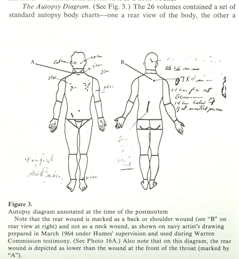...The findings of the doctors who conducted the autopsy were consistent with the observations of the doctors who treated the President at Parkland Hospital. Dr Charles Carrico, a resident surgeon at Parkland, noted a small wound approximately one-fourth of an inch in diameter (or to 8 millimeters) in the lower third of the neck below the Adam's apple. Dr Malcolm Perry, who performed the tracheotomy, described the wound as approximately one-fifth of an inch in diameter (5 millimeters) and exuding blood....