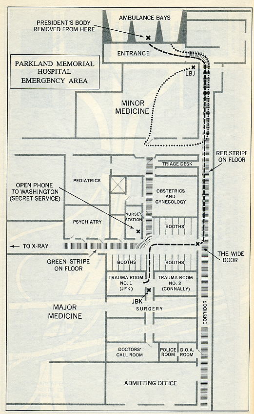 Trauma Room 1 Revisited (shows map of doctors working on JFK)