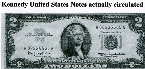 On June 4, 1963, President John F. Kennedy signed Executive Order No. 11110 that returned to the U.S. government the power to issue currency, without going through the Federal Reserve (US Central Bank). Mr. Kennedy's order gave the Treasury the power "to issue silver certificates against any silver bullion, silver, or standard silver dollars in the Treasury." This meant that for every ounce of silver in the U.S. Treasury's vault, the government could introduce new money into circulation. As a result, more than $4 billion in United States Notes were brought into circulation in $2 and $5 denominations. $10 and $20 United States Notes were never circulated but were being printed by the Treasury Department when Kennedy was assassinated.