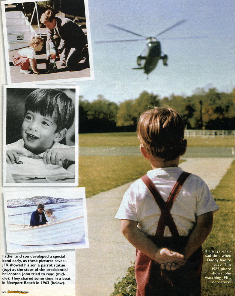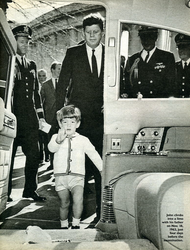JFK'S LAST FULL DAY IN TEXAS (...At departure on Thursday morning JFK took 3-year-old John-John with them in the helicopter from the White House lawn (6-year-old Caroline was in school) to Andrews Air Force base where he kissed him goodbye and boarded Air Force One (John-John had been crying because he wanted to go too...)