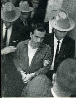But proof that the man in the Depository doorway is Oswald, and not Lovelady, is the photo below, taken from page 48 of the same magazine, showing Oswald in police custody. He's wearing identical clothes to the man standing in the doorway. I've put it next to the enlargement of Oswald in the doorway for direct comparison: