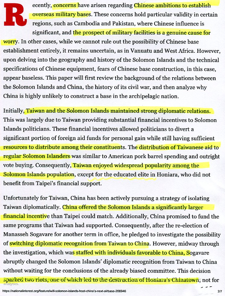 Will Solomon Islands host China's next airbase?, National Interest, October 14, 2023