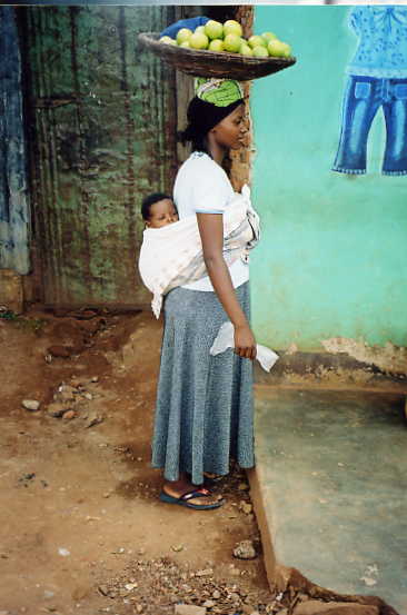I couldn't resist taking a photo of a woman selling apples, curious always as to how head loads are balanced and babies on back are wrapped.