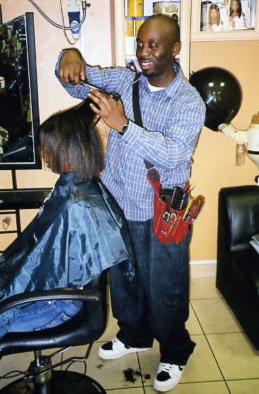 After our first meeting, I went back and got my hair done again, and while I waited I took a photo of hairdresser Meddie in action.