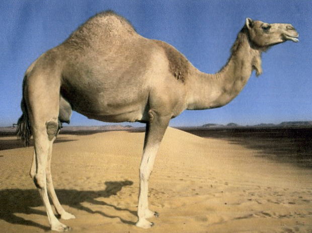 ...An average milking camel will produce 5.28-6.6 gal. (20-25 L) of milk a day. A camel with well-formed udders may produce 8-10.6 gal. (30-40 L) a day. Camels can give milk even under harsh conditions and, unlike dairy cows, do not need much or any supplements to do so. A camel can produce 5.28 gal. (20 L) of milk a day without drinking any water for up to 10 days! Camel milk is chemically similar to cattle milk, but has a higher proportion of vitamin C. It also has more fat, protein, and minerals than either cow's or goat's milk... Camel milk is said to be an acquired taste....