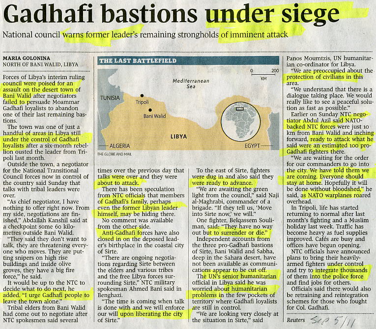 Gaddafi calls for ceasefire as NATO strikes Tripoli, Wash Post, Saturday, April 30, 2011