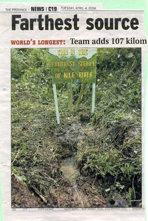 Team reaches Nile's true source (many rivers feed Lake Victoria). BBC, Apr 1, 2006