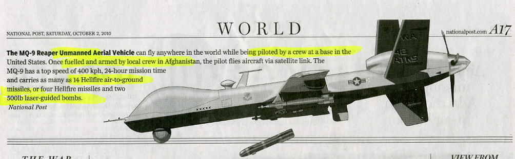 Drone strategy comes with much baggage, National Post, Oct 2, 2010