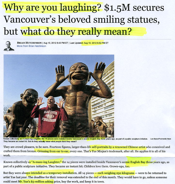 Why are you Chinese statues in Canada laughing?