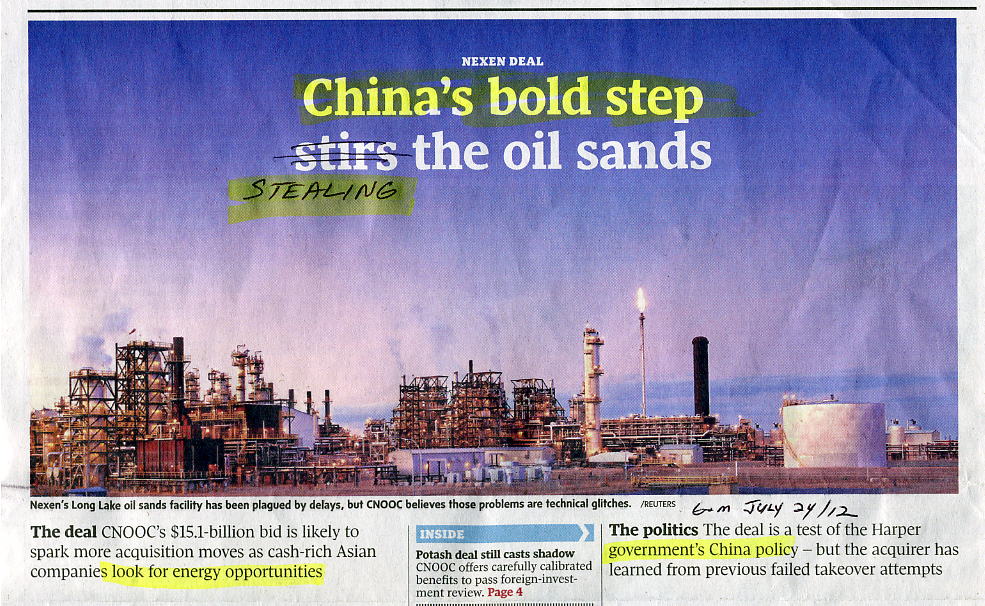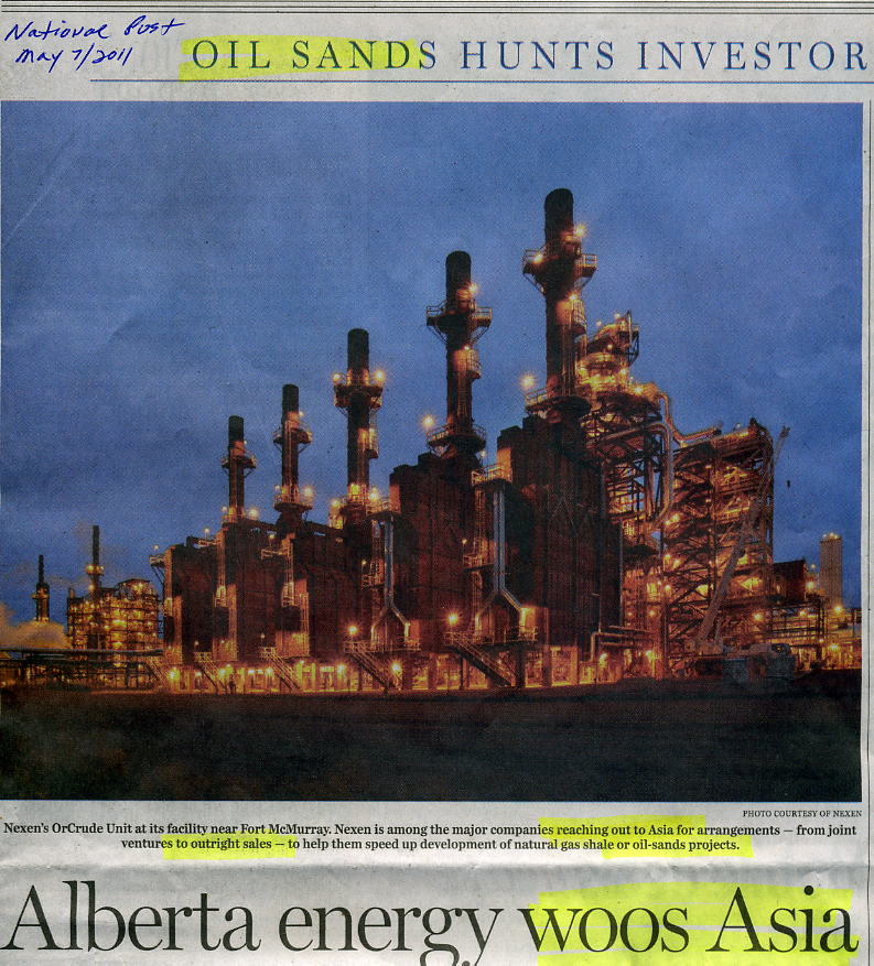 Canada oil sands woos China (politicians in treason dealing nation's natural resources). National Post, Jun 11, 2011
