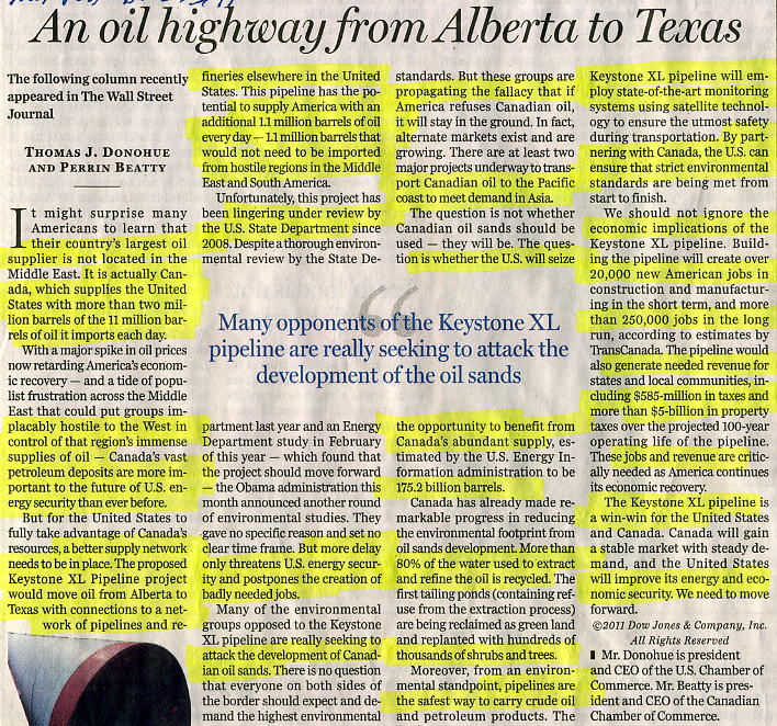 An oil highway from Alberta to Texas, National Post, Apr 15, 2011