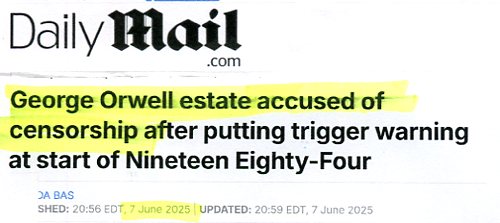 George Orwell estate accused of censorship after putting trigger warning at start of Nineteen Eighty-Four, June 7, 2025