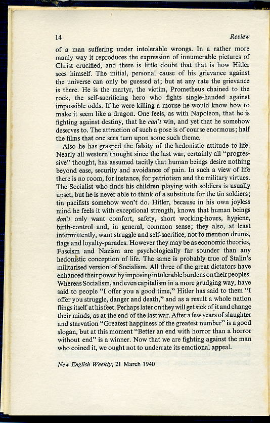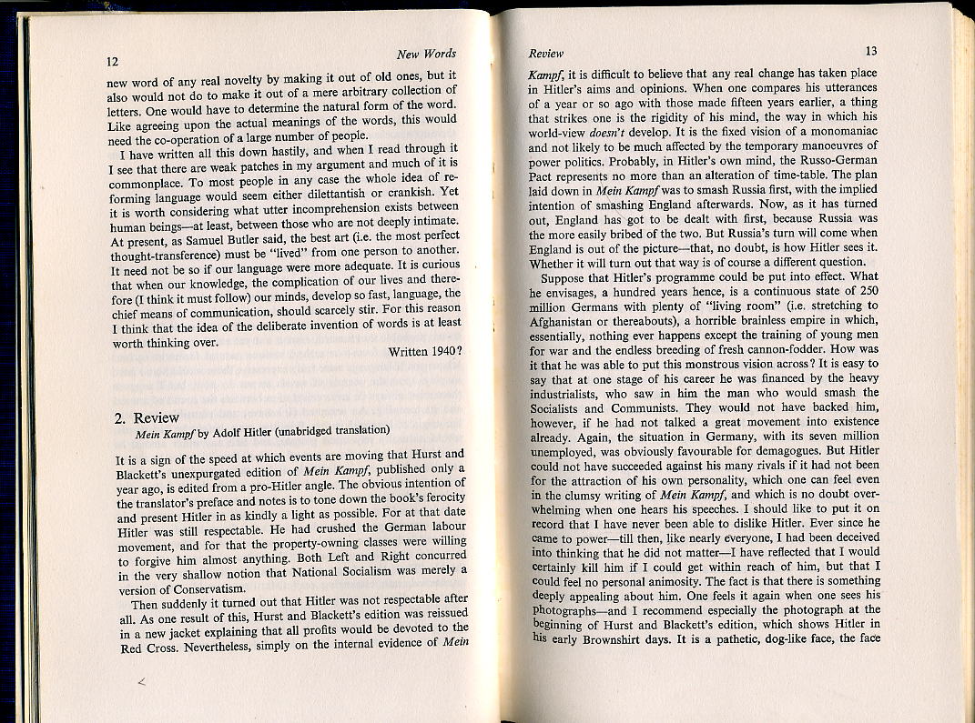 Orwell reviews Hitler's Mein Kampf 1940 (wants it put on record never able to dislike Hitler). Spectator, May 28, 2012