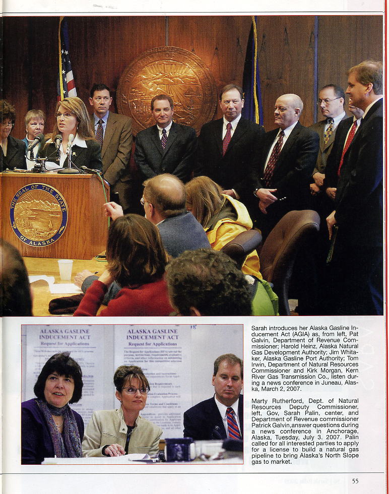 Governor Sarah Palin (passed ethics reform legislation & her natural gas pipeline bill). CoxNewsService, Sep 28, 2008