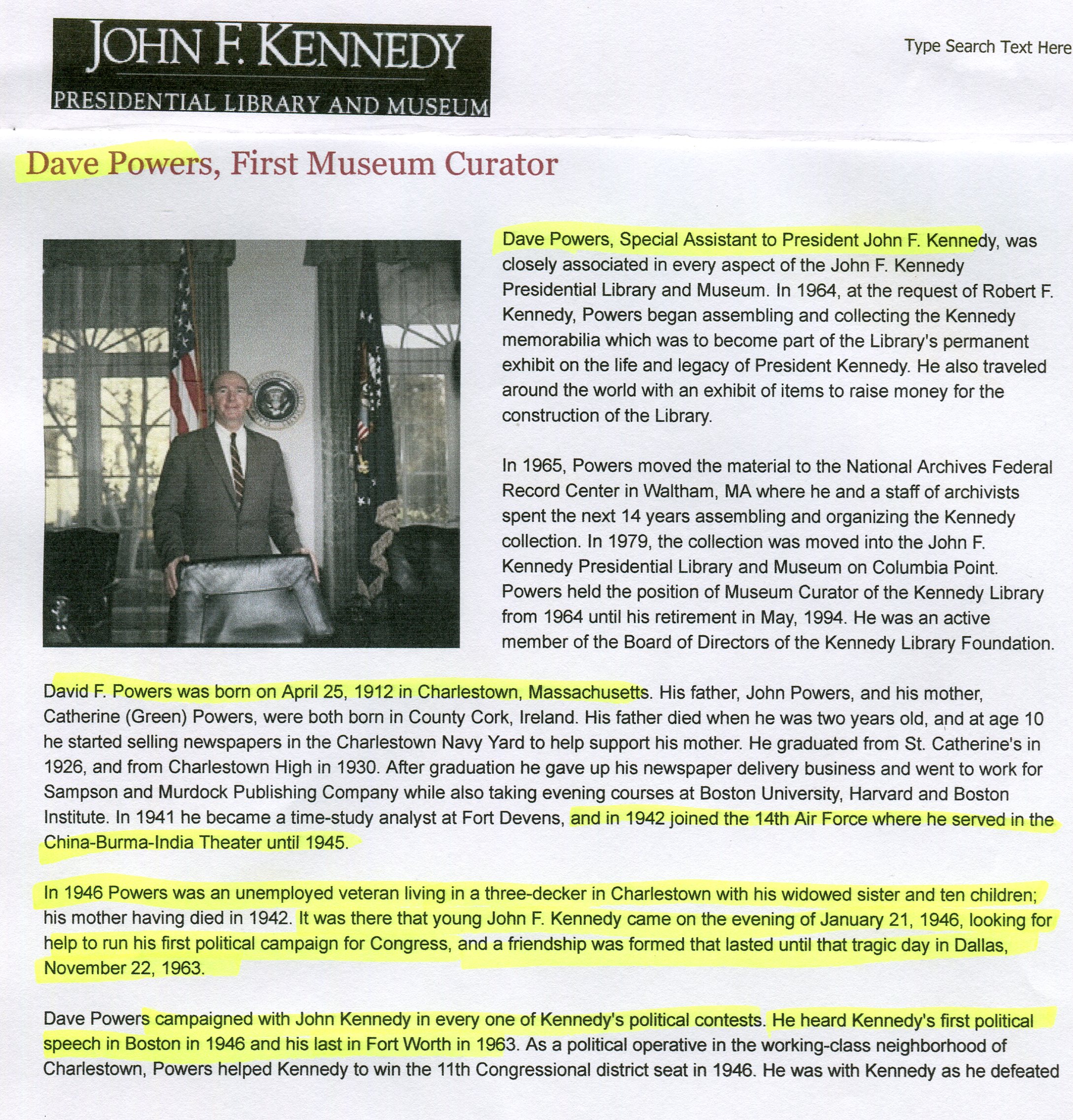 JFKwithDavePowers DavePowersLibraryJFK
