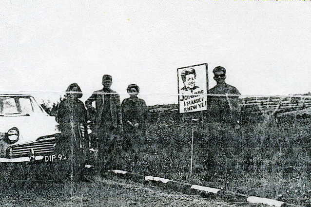 JFK WE HARDLY KNEW YE SIGN (Peter was the person holding the "Johnny I Hardly Knew Ye" placard for JFK during his visit to New Ross, Ireland in 1963)