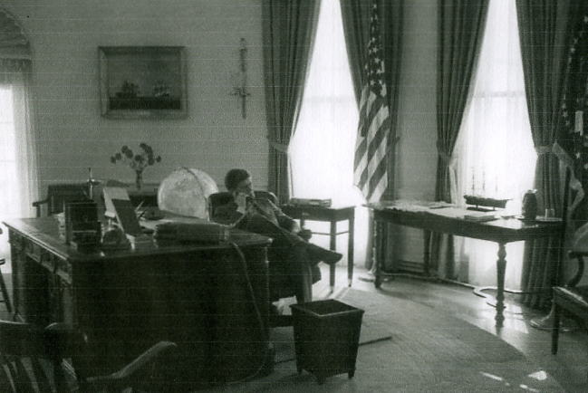 JFK's pride in making New Ross proud shines through in those words -- he truly DID live in the White House -- and people truly could come and see him there. It reminds me of a great picture of him as the 35th President of the United States, scanned above.