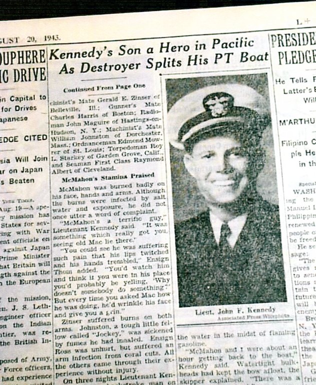 Unknown John F. Kennedy is hero on PT-109, New York Times, August 20, 1943