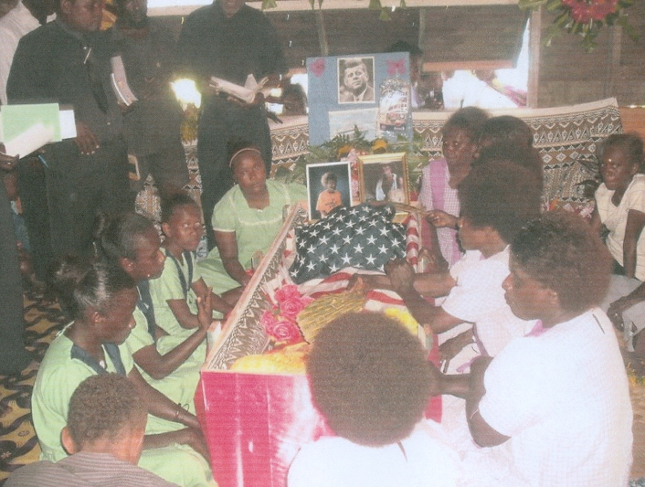 Tears are stinging my eyes as I look at the photos and read your excellent article describing your grandfather's burial ceremony. Aaron Kumana's love for JFK, America and the Solomon Islands comes shining through in his life and his death. Aaron Kumana put Solomon Islands on the map and he is going down in history with JFK.