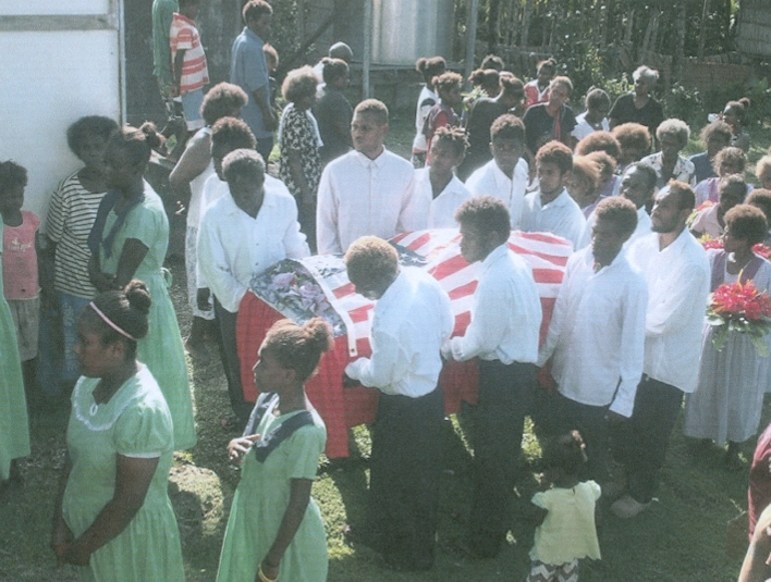 Aaron Kumana's burial ceremony on August 6th was attended by relatives, family members, visitors and the community. The ceremony was described as one of the most peaceful and finest occasions ever recorded here on the island of Ranoggah. His death was the loss of our family founder -- who himself brought Christianity to this area. Leaving behind him are his 9 children, 50+ grandchildren, 75 great-grandchildren and 5 great-great grandchildren. Aaron Kumana is the Family Wiseman for his message to encourage mothers and fathers, husbands and wives to be enthusiastic in committment to family and community.