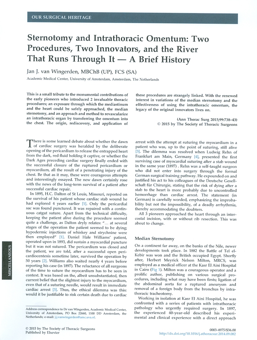 Sternotomy and Intrathoracic Omentum: Two Procedures, Two Innovators,