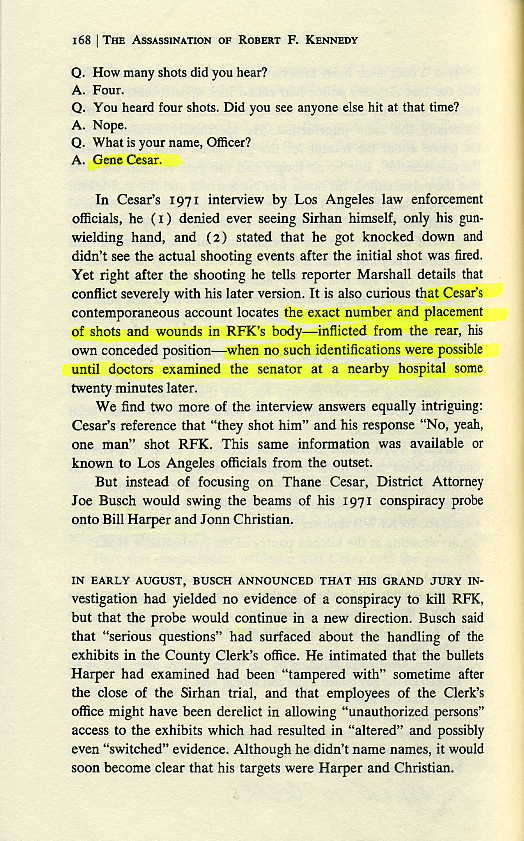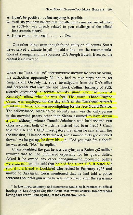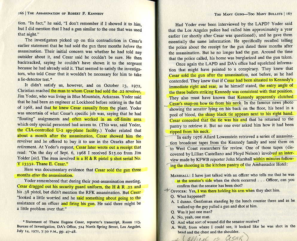 Below are pages from THE ASSASSINATION OF ROBERT F. KENNEDY that reference Thane (also called Gene) Cesar: