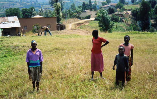 Across that field, and into the banana trees of the village, is where Emmanuel had run. In the distance you can see children playing, and curious about what was going on. Bob went close and took a photo.