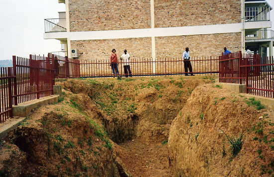 So ten days into the Genocide - on April 16, 1994 - 65,000 Tutsis ran there for protection, but the whole thing was a set-up. No sooner had they all hunkered down than the electricity and water supply were disconnected, and for the next week they had nothing but contaminated water to drink and no food. Then they were attacked by bands of random killers but managed to fend them off with stones. But then, a couple of nights later on April 21, the killing started with a vengeance. The French soldiers who said they would protect them, disappeared and in their place came local Hutu Interahamwe armed with machetes and a batallion of policemen (Gendarmeries) sent by Colonel Bagosora (a mastermind in the Genocide).