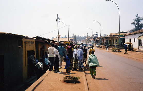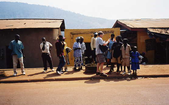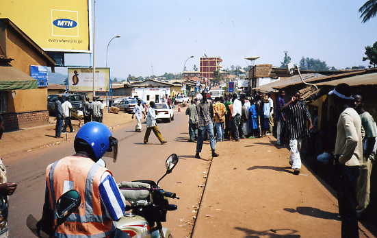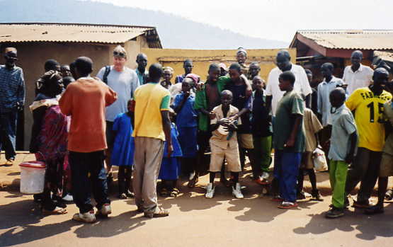 I didn't notice, until I got home and developed the picture, that the photo of Kagame is on a soccer poster celebrating the KAGAME CUP 2004, which is so appropriate as at that very moment Bob had found some recipients for a soccer ball.