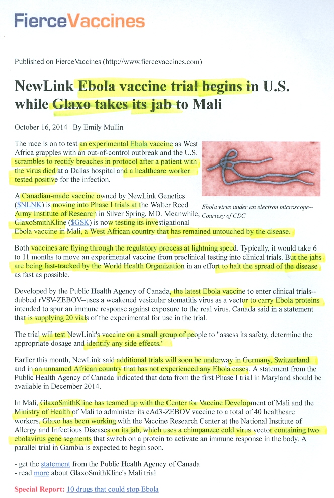 WHO/BigPharma fast-track Ebola injections