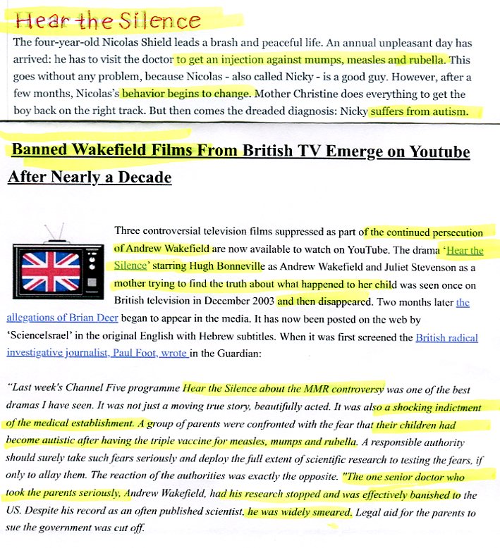 "Last week's Channel Five programme HEAR THE SILENCE about the MMR controversy